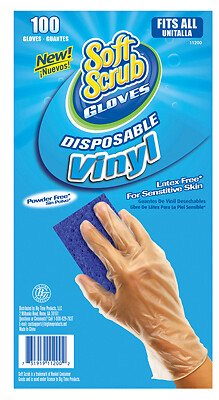 Soft Scrub 11200-16 Disposable Vinyl Gloves, Latex & Powder Free, One Size,