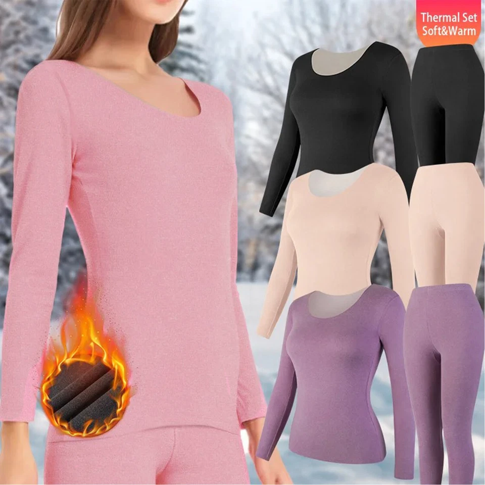 Damen Winter Thermo Unterwäsche Set Nahtlos Warm Lange Unterhosen Oberteil & Unterteil Pyjama