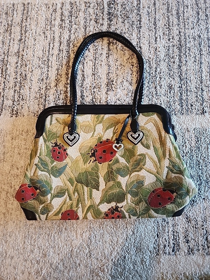 BRIGHTON Alyssa Tapestry Ladybug Weekender Overnight Bag Tote Purse Leather