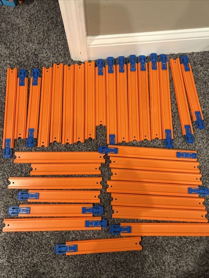 Menge 32 Orange Hot Wheel Track Stücke mit Clips