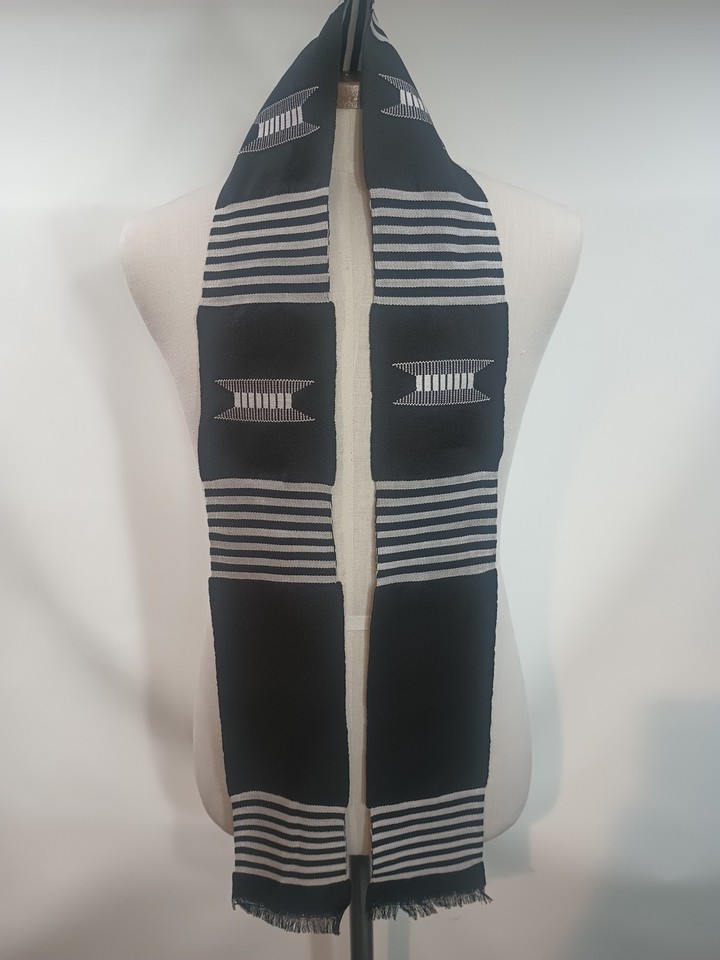 Schwarz-weiße Kente Stola Abschluss Schärpe mit Hocker Symbole