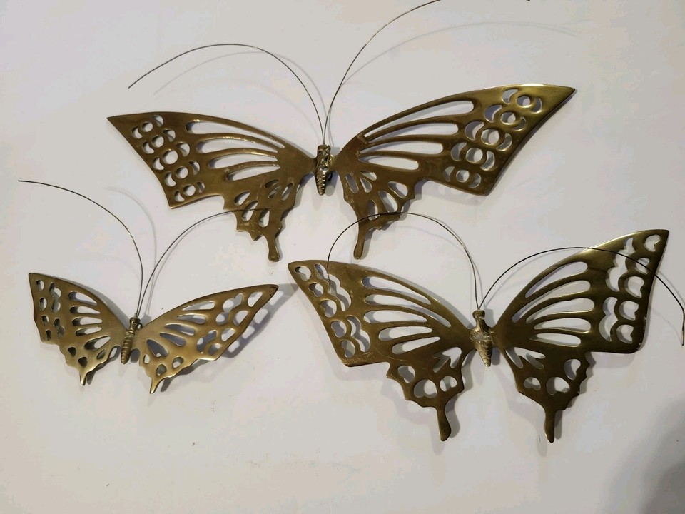 Vintage 3 Brass Butterfly Wall Decor Art Butterflies 15" 10 Inch 8"