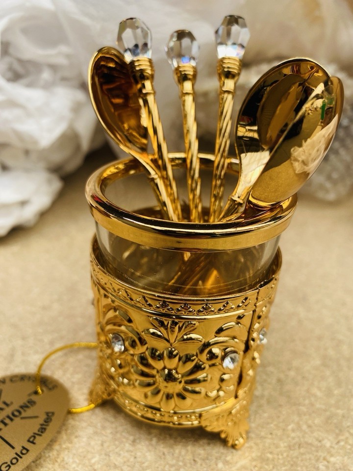 7 tlg Deko Dessert Besteck Set Teelöffel Glitzer Halter Deko Geschenk
