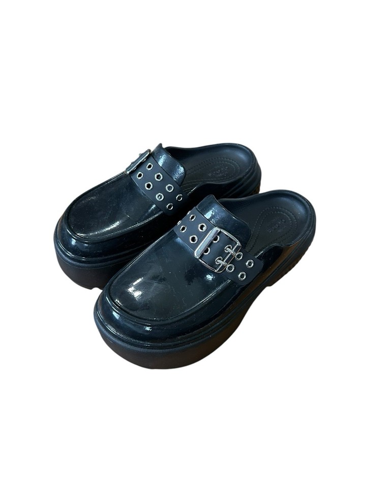 Crocs Stomp Hochglanz Loafer schwarz Slipper Plateau Sandale 210364 M5 W7