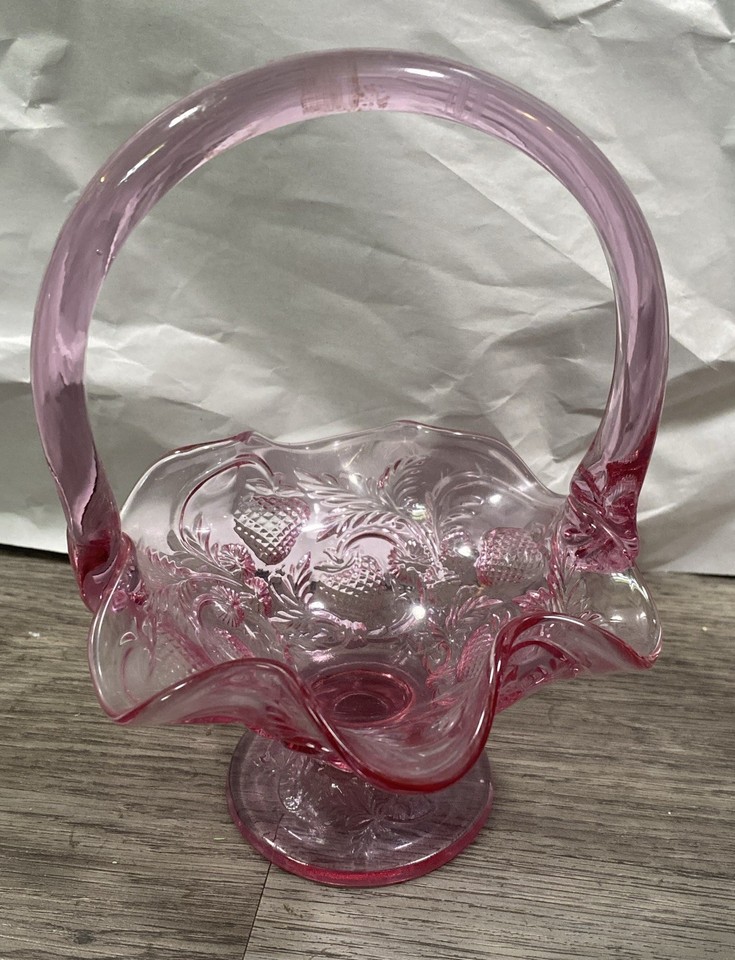 Vintage Fenton fuchsia rosa mundgeblasen Glas Griff Korb Erdbeeren 6”x5”