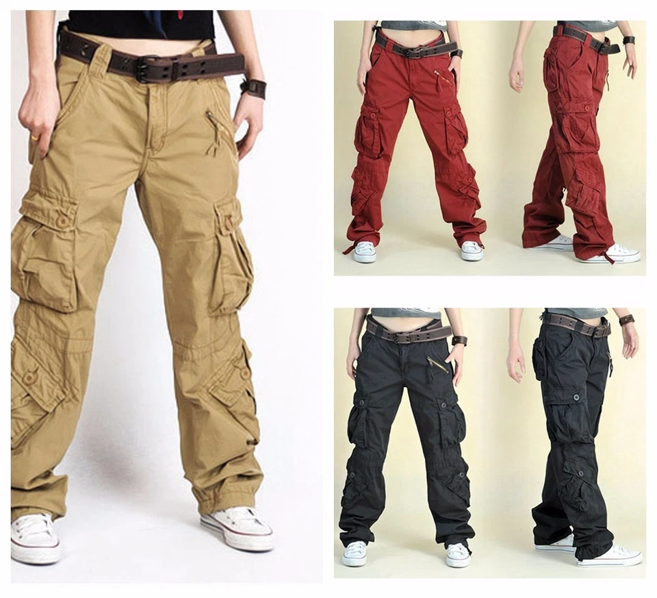 Damen Cargo Hip Hop Hose Pants Locker Outdoor Tasche Retro Style Freizeit
