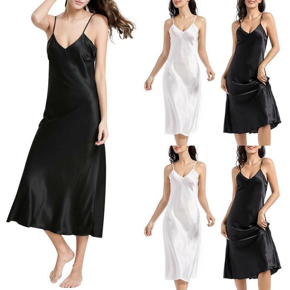 Womens Lace Satin Silk Long Nightdress Chemise Sexy Lingerie Slip Dress Nightie
