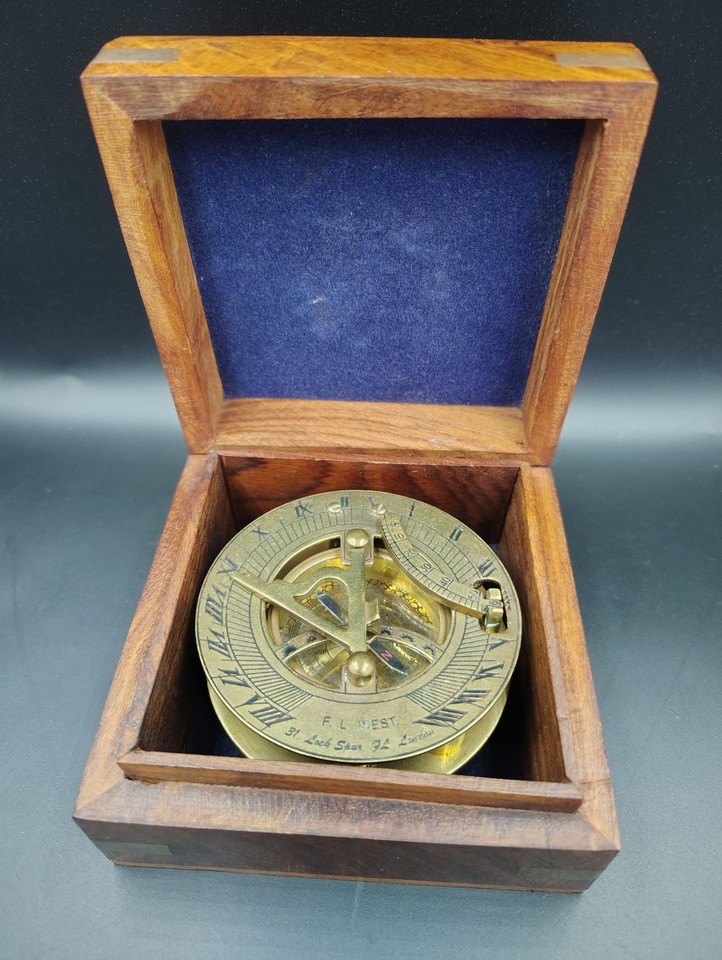 VINTAGE Sonnenuhr Kompass Taschensonnenuhr Kompass mit Holzbox