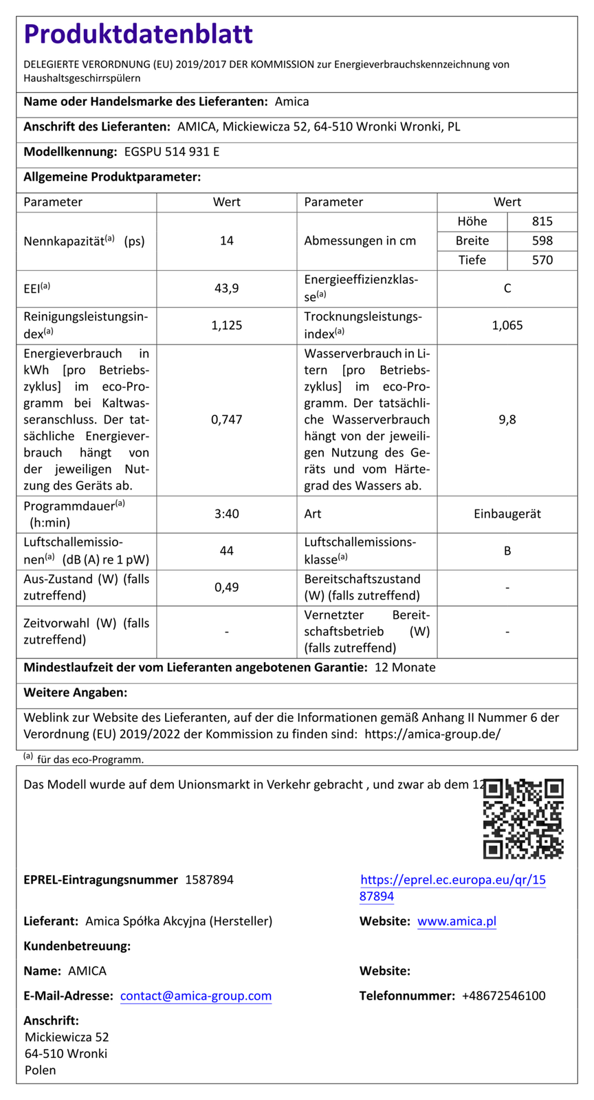 - Energieeffizienzklasse