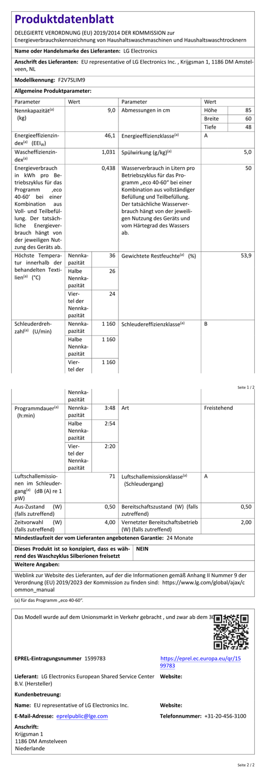 LG F2V7SLIM9 Serie 7 Waschmaschine - Wie neu 1#18323570