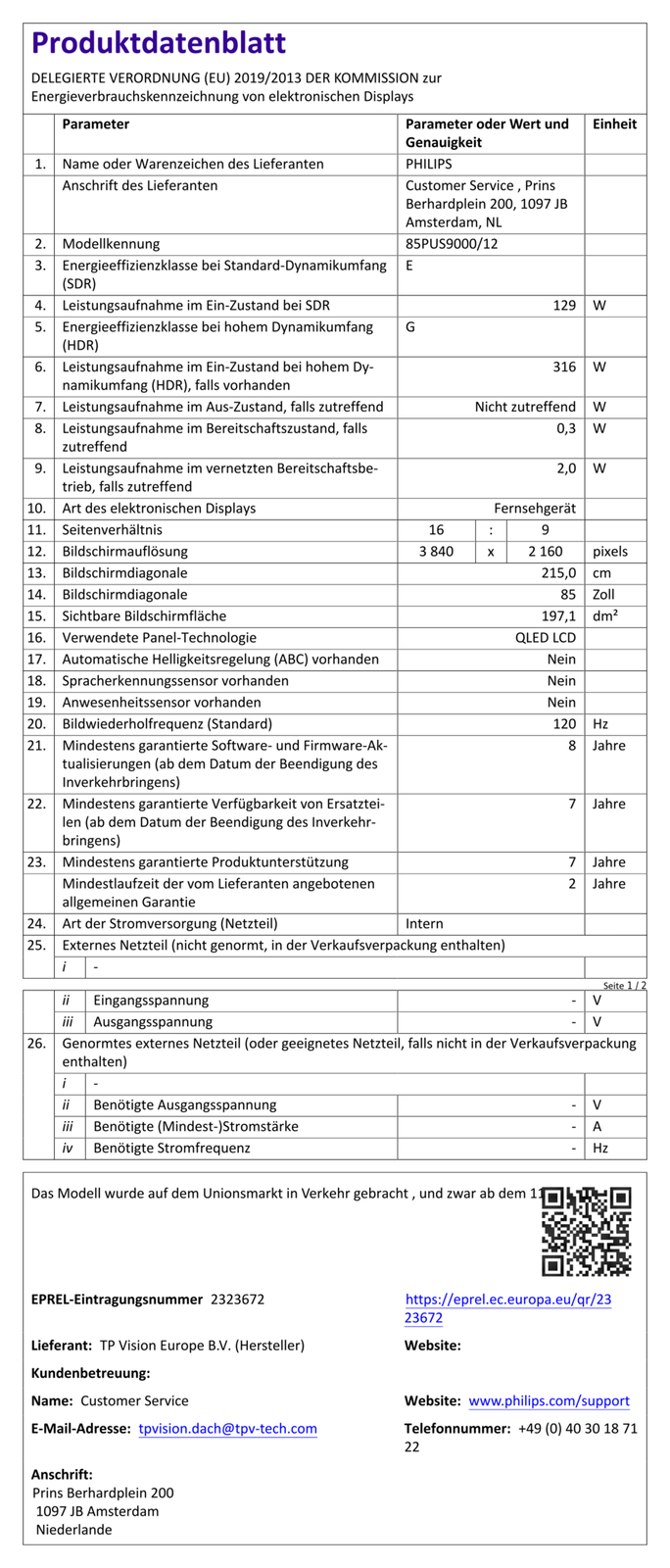 Philips Fernseher 85PUS9000 85 Zoll 4K Ultra HD QLED TV #2552963