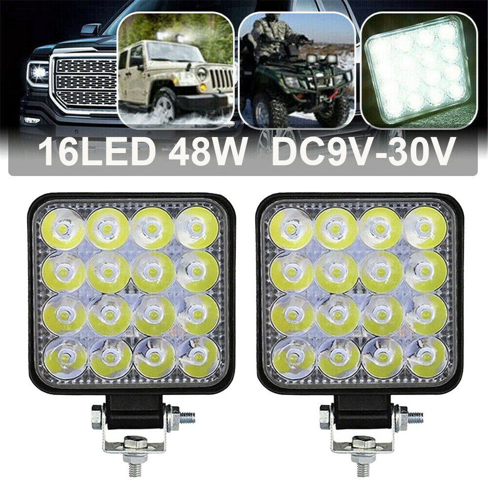 Pair 16LED 48W 12/24V Volt Work Light Bar Flood Beam Lamp For Off Road SUV Truck