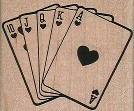 Royal Flush (Hearts) 2 3/4 x 2 1/4" Rubber Stamp, Playing Cards Stamp, Games