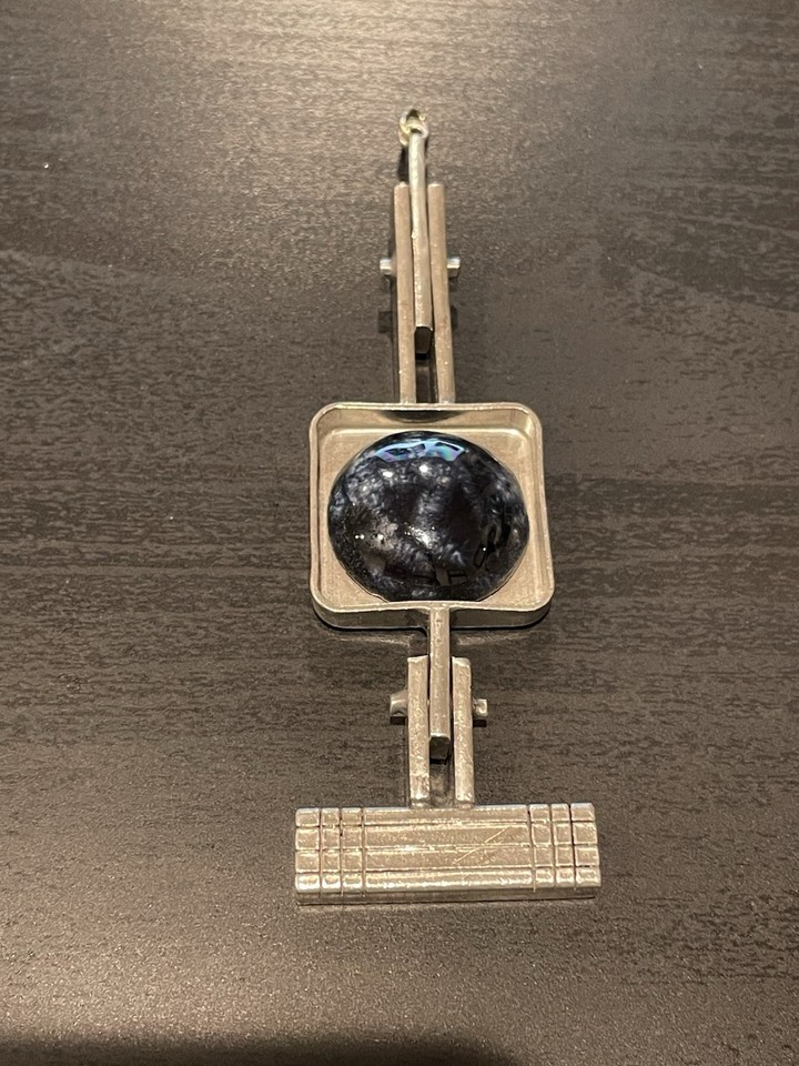 Vintage Modern MCM Lysgards Design Zinn Dänemark Blau Marmor Glas Cabochon