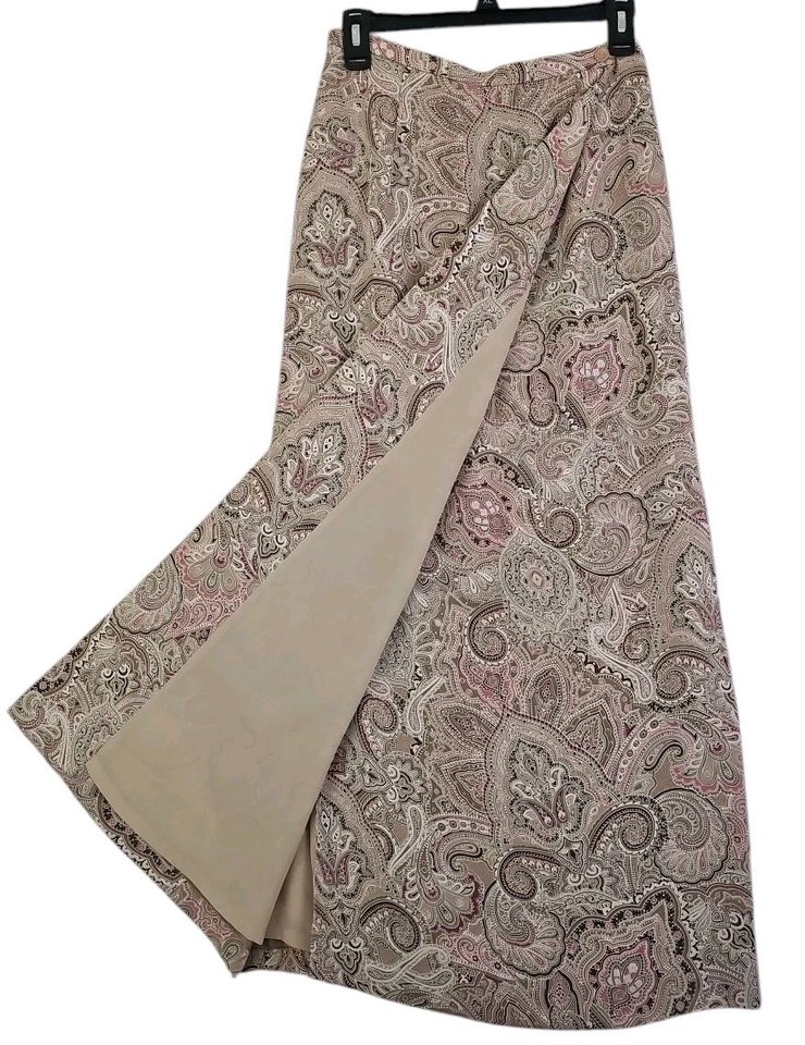 Vintage Talbots ~Woman Size 6~ Pink/Beige 100% Silk Wrap Maxi Skirt Fully Lined.