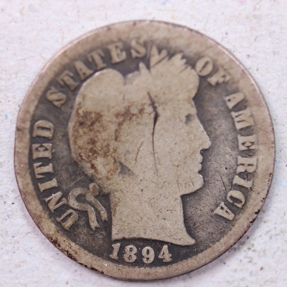 - 1894 Barber Silver Dime., Good Circulated Coin., Store #1168