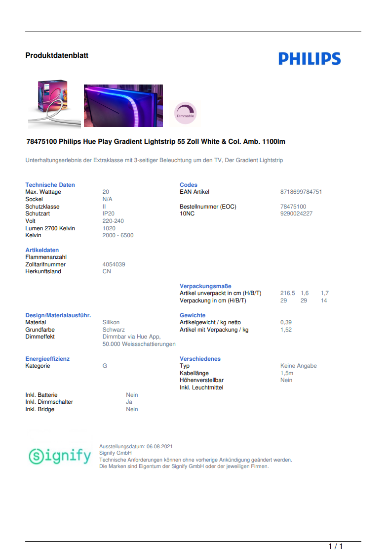 Philips Hue Play Gradient Lightstrip 55" TV interaktive Beleuchtung 1100lm Smart