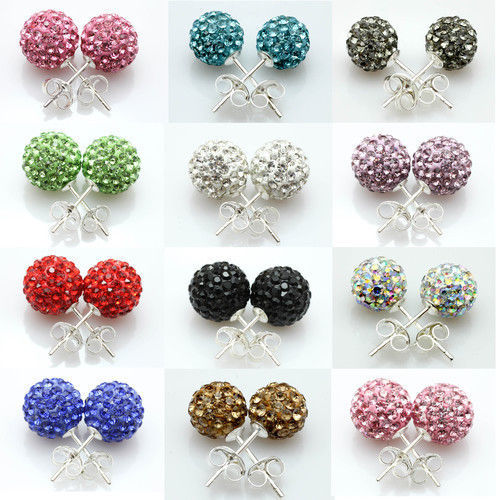 6-8-10-12mm 925 Sterling Silver Shamballa Crystal Ball Stud Earring UK Seller