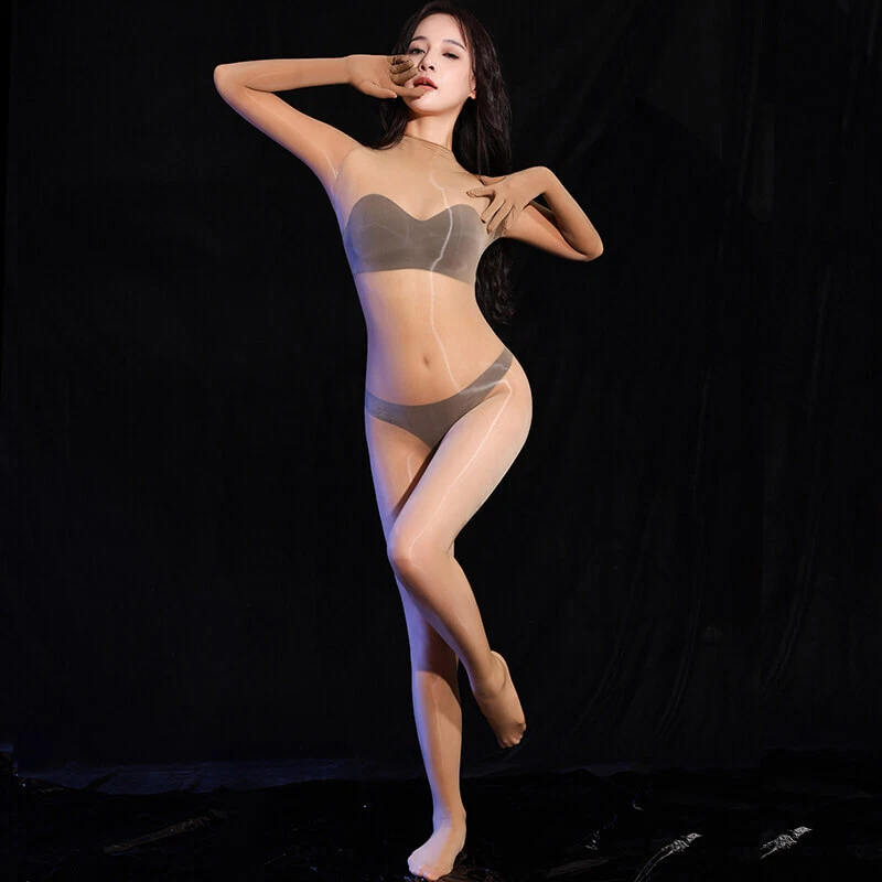 Unisex 8D Shiny Glossy Body Seamless Bodystocking Catsuit mit 5 Finger Handschuhen