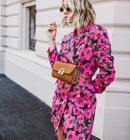 Zara Pink Black Floral Satin Blazer Belted Dress S NWOT