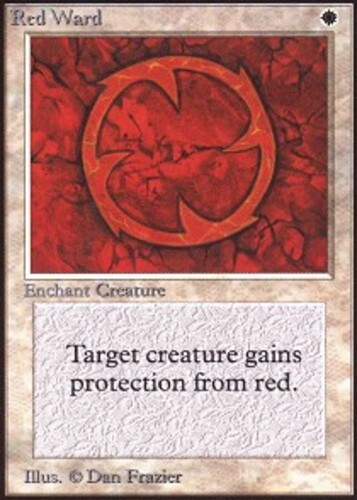 - Enchant creature Enchanted creature has protection from red. This