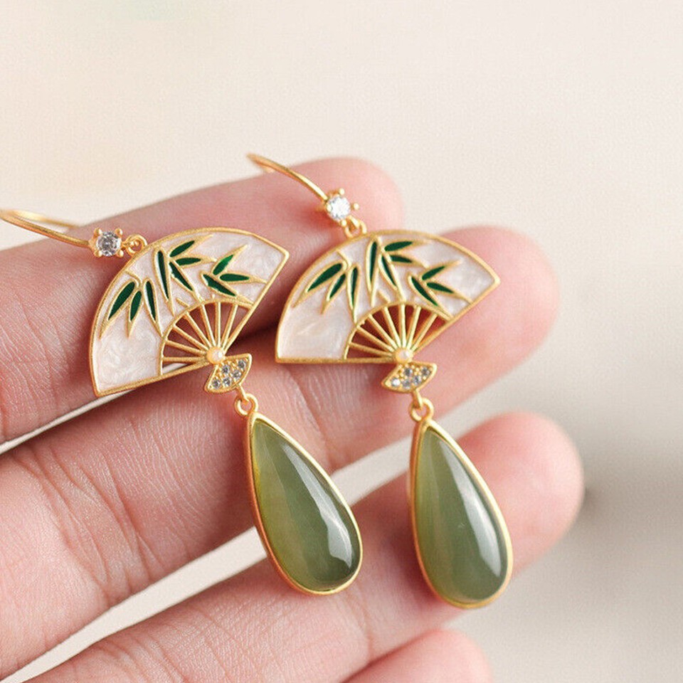 Jade Water Drop Earrings Fashion 925 Silver Plated Natural Jewelry Women Green