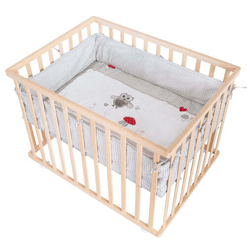 roba Laufgitter 'Adam & Eule' 75x100, inkl. Schutzeinlage & Rollen, Holz natur