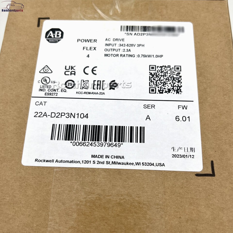 2022 AB 22A-D2P3N104 PowerFlex 4 0,75 kW 1 PS Klimaantrieb Neu Factory Sealed