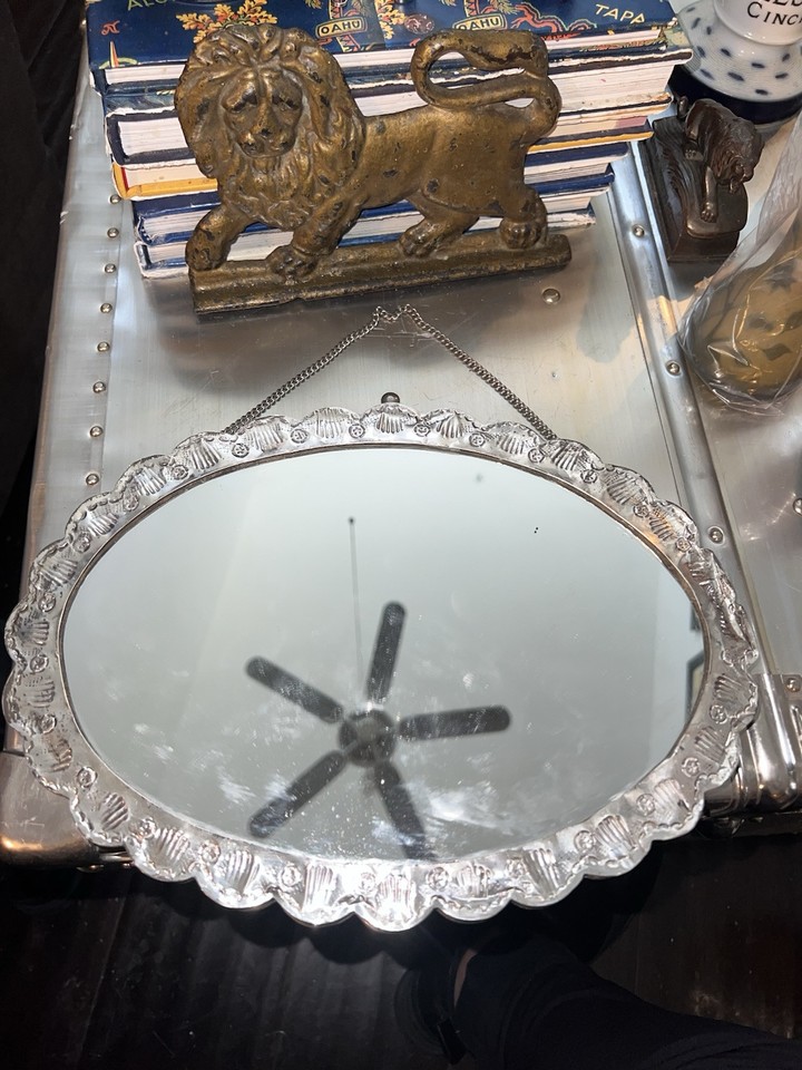 Vintage 900 Sterlingsilber hängender türkischer ovaler Hochzeitsspiegel Repoussé von Siam