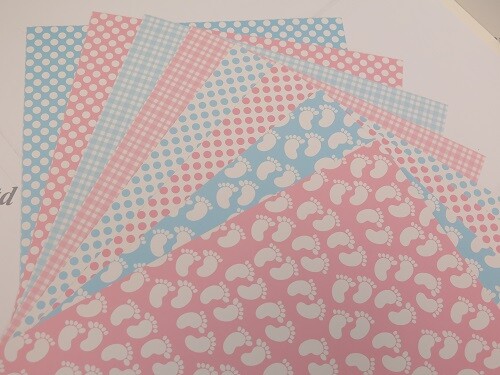 Patterned Card A4 300gsm 1-Sided Baby Feet, Gingham, Polka Dots Pink or Blue