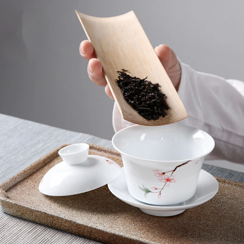 Jingdezhen Porzellan Gaiwan Tasse Untertasse Massiv Blumendruck China Schüssel Tureen Neu