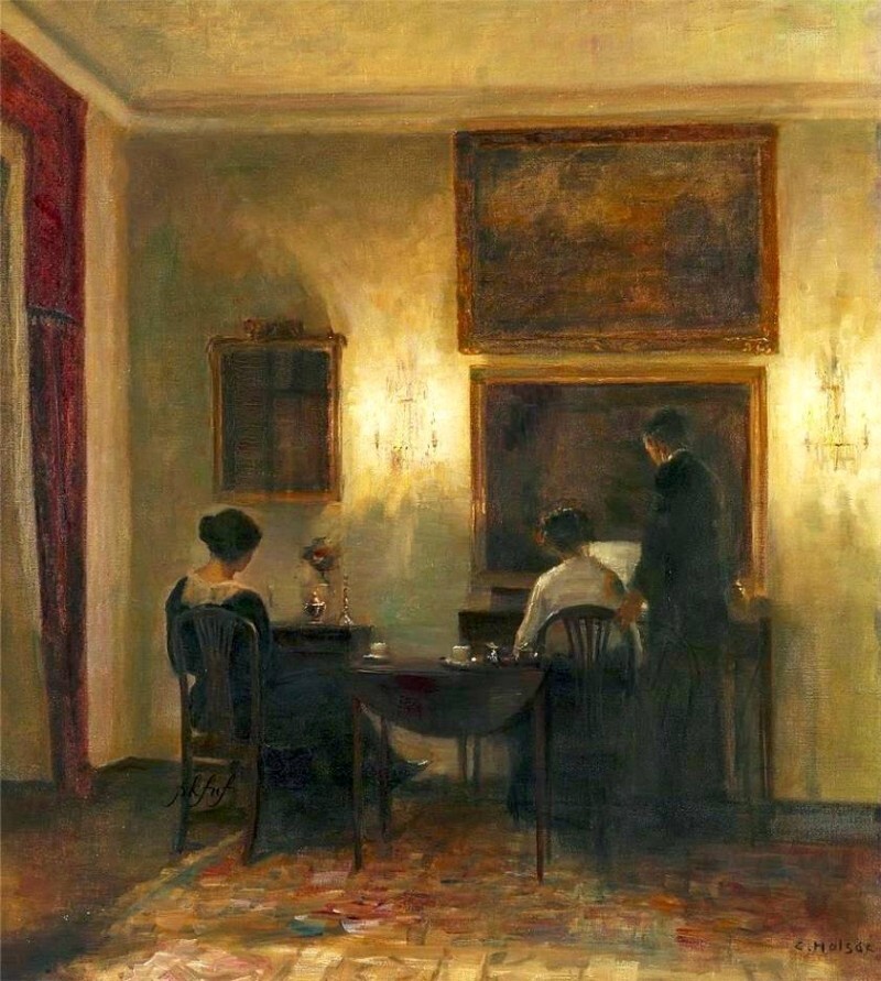 Kunst Ölgemälde Frau Portrait Landschaft Interieur-Carl -Vilhelm-Holsø e Kunst