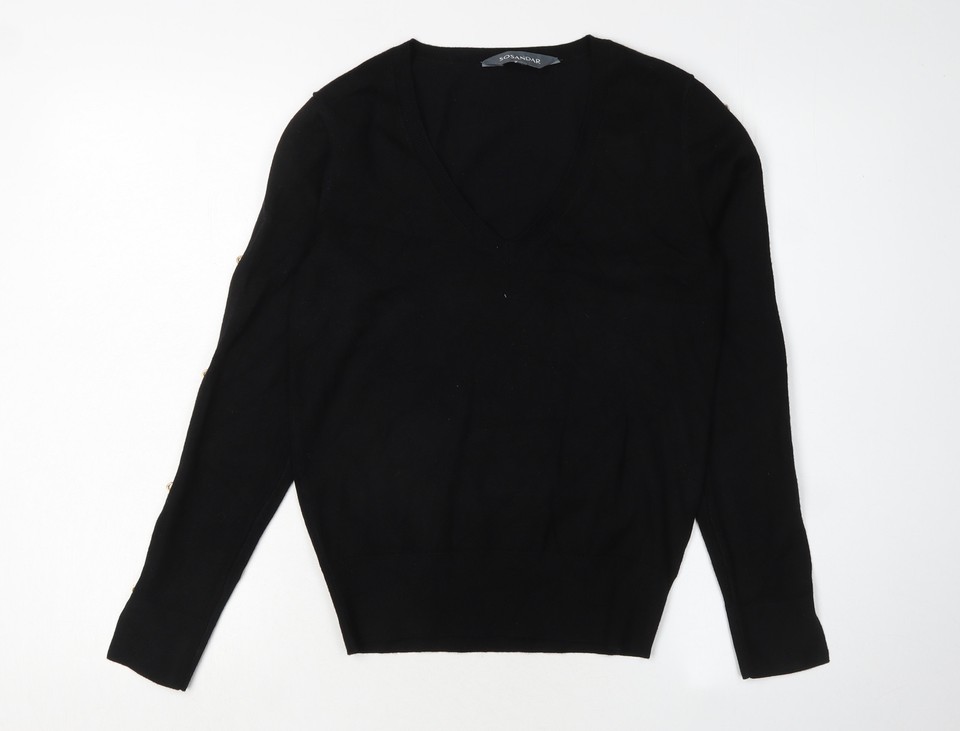 Sosandar Damen schwarz V-Ausschnitt Pullover Pulli Größe 8
