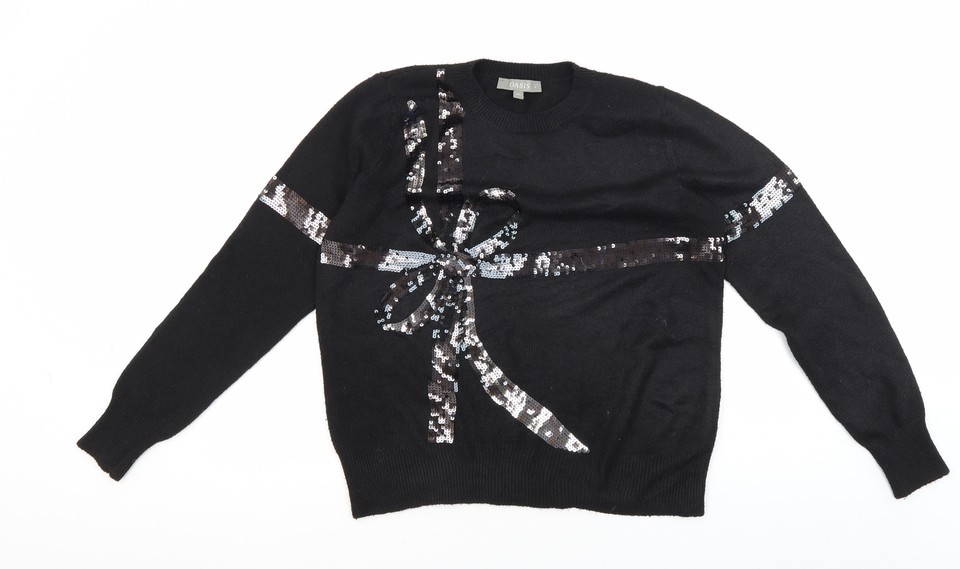 Oasis Damen Pullover Pulli schwarz Pailletten L