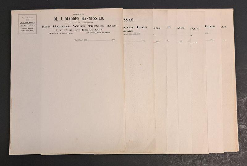 9 Antique Letterheads Madden Harness Co. Bangor Maine Whips Trunks Dog Collars