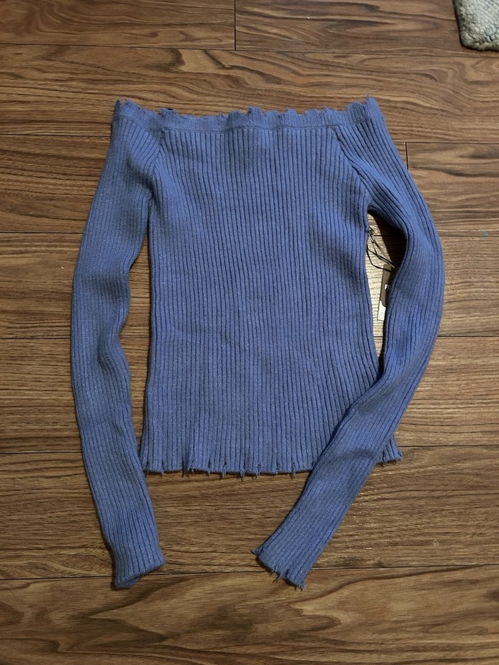 Damen Forever 21 Ripp Schulterfrei Used Pullover Gr. L Neu