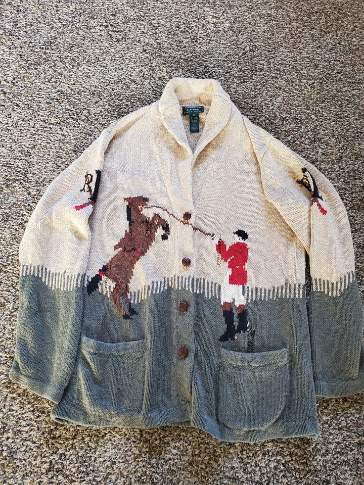 RAR Ralph Lauren Pullover Strickjacke Reitsport Leinen Pferd RRL Handstrick Medium