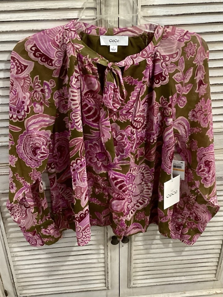 CECE Damen Bluse Paisleymuster Bindekragen Plissee vorne Gr. S ** hübsch **