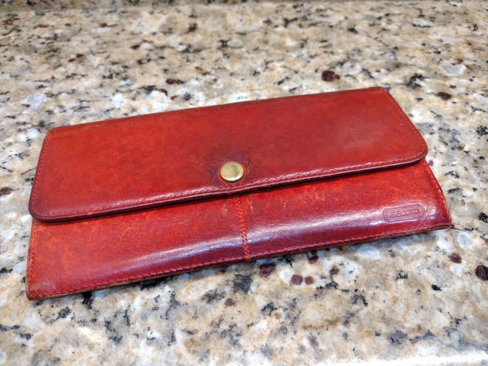 Vintage Coach Damen-Geldbörs e aus blutorangefarb enem Leder mit Doppelfaltung und Klappe