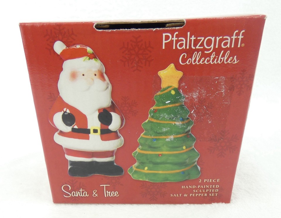 Pfaltzgraff Holiday Santa & Christmas Tree Salt & Pepper Set Hand-painted NEW!