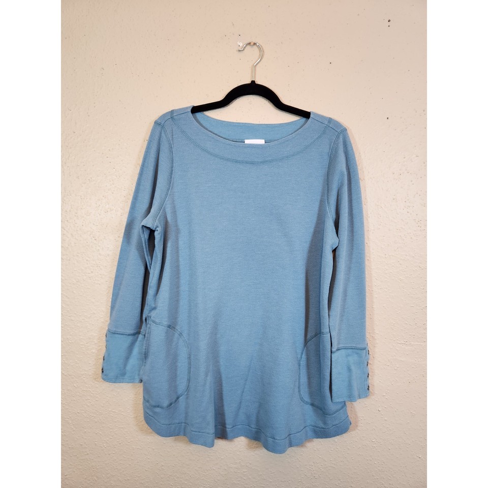 J. Jill Damen blau einfarbig Rundhals Langarm Waffel Thermo Top Größe Large