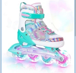 Nattork Kinder Inline Skates Schmetterling & Blume für Jungen Mädchen 4 Größen (1-4) türkis