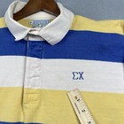 Vintage Lands End Rugby Polo Men’s XL Blue Yellow Thick Striped Long Sleeve USA