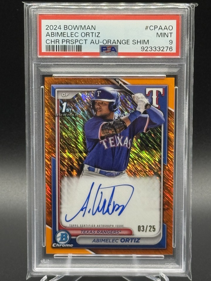 2024 Bowman Chrome 1st Abimelec Ortiz Auto Orange Shimmer /25 PSA 9 Rangers