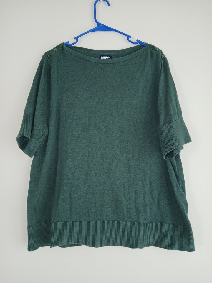Lands End Womens Size 2X (20W-22W) Dark Green Short Sleeve Knit Top