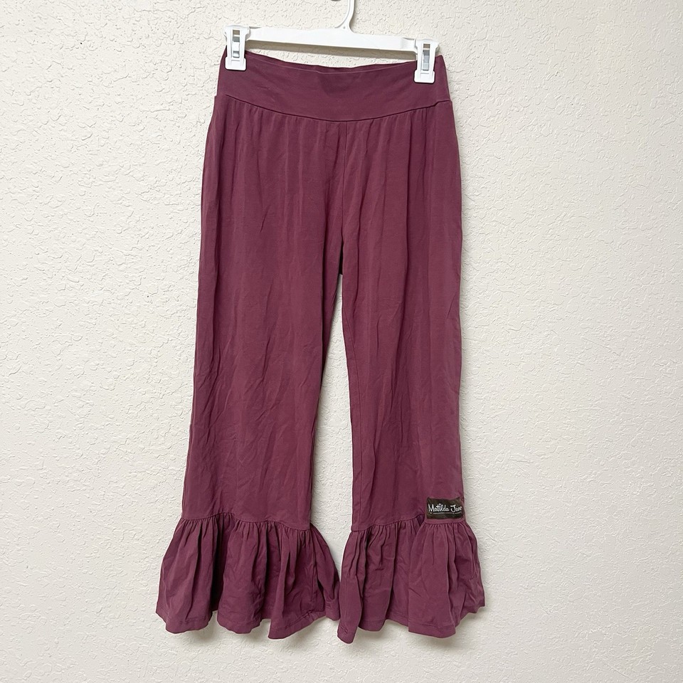 Matilda Jane Womens Big Ruffle Flare Crop Pants Size S Knit Pull On Boho Pink