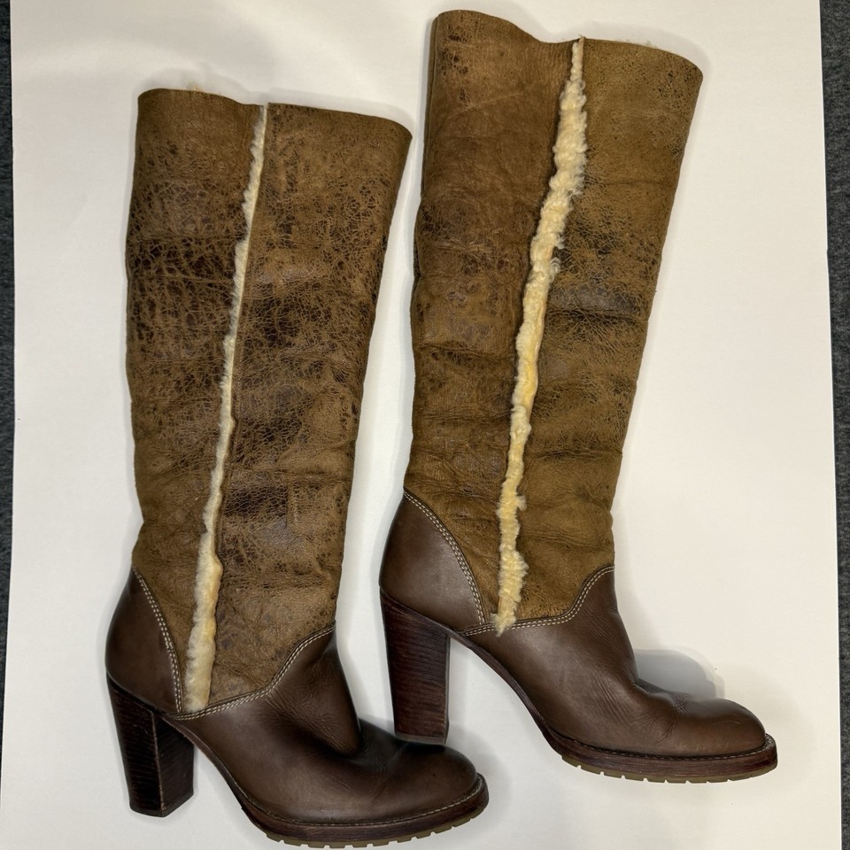 Michael Kors Stiefel braun Wildleder Lammfell Absatz Leder Lammfell gefüttert Größe 8
