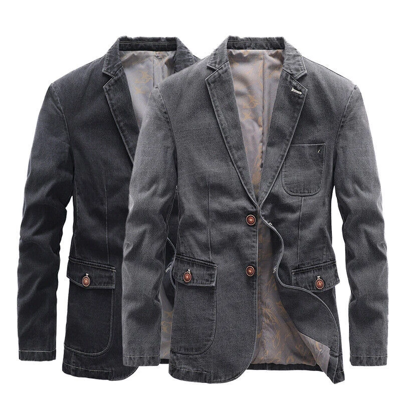 Herren Blazer Freizeit Anzug Jacke Used Baumwolle Oberbekleidung Langarm Slim Mantel