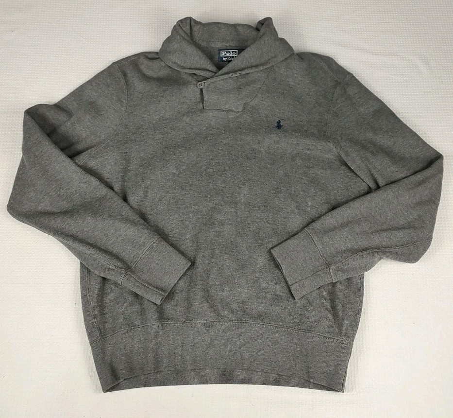 Polo Ralph Lauren Sweatshirt Wasserfallauss chnitt geknöpft grau Baumwolle Freizeit Herren Medium