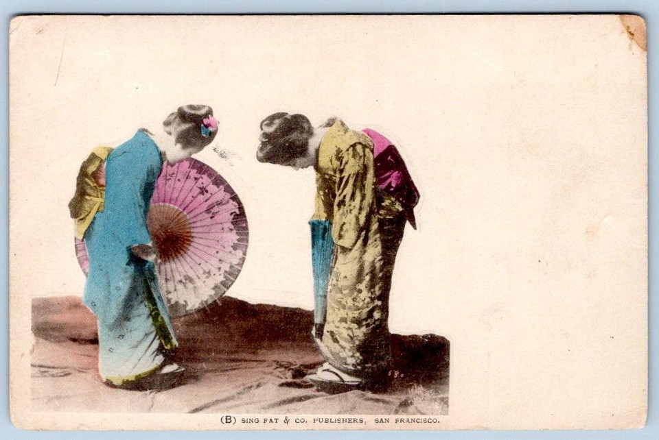 Vor 1906 JAPANISCHE GEISHA MÄDCHEN HANDKOLORIERT SINGEN FETT & CO SAN FRANCISCO POSTKARTE